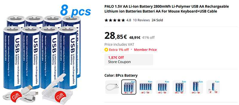 Перезаряжаемые продвинутые литий-ионные аккумуляторы AA PALO на 2800 мВч, не требующие специального зарядного устройства, так как заряжаются через порт microUSB. Комплекты от 1 до 8 штук, к каждому комплекту в подарок идет пластиковый кейс и кабель для зарядки.