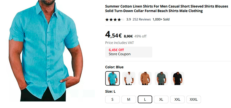 Легкие мужские хлопчатобумажные рубашки различных цветов. Размеры вроде соответствуют европейским, я себе заказал обычный L.