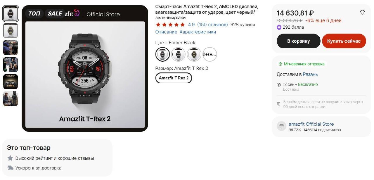 на AliExpress за 13820₽ с автоматической скидкой, в наших магазинах от 17791₽. Умные часы устойчивы к ударам, солевому туману, дождю, погружениям и перепадам температуры. Имеют AMOLED-экран 1.39" с разрешением 454x454, встроенный плеер, датчик кислорода в крови, 150 спортивных режимов и 8 типов нагрузки. Работают автономно до 24 дней.