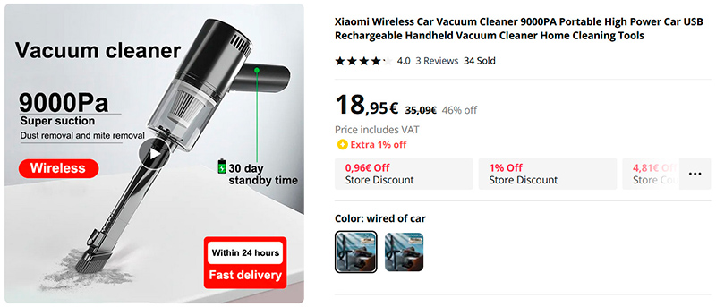 А потом я купил вот такую модель, о которой уже писал в своих выпусках - Xiaomi Wireless Car Vacuum Cleaner. Там обещалось аж 9000 Па плюс всякие дополнительные насадки, однако выглядела моделька скучновато, да и стоила копейки - всего €20.