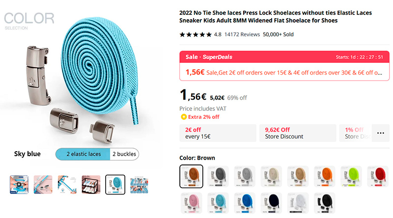 Понадобилось тут мне обновить запас, и я обнаружил вот такой новый интересный вариант с удобной застежкой. Теоретически застежку можно быстро расстегивать и застегивать снова, но с эластичными шнурками обычно такой необходимости нет: один раз застегнул - и все. Главное условие установки - зашнуровывать кроссовок надетым на ногу, при этом сильно не затягивать - силу почти не прикладывать. И всё, после этого кроссовок будет легко надеваться на ногу и сниматься с нее, ходить в кроссовках будет вполне комфортно, и вы навсегда забудете само понятие "у меня развязался шнурок". Данный вариант - удобный, недорогой и тут большой выбор цветов - аж 14 видов.