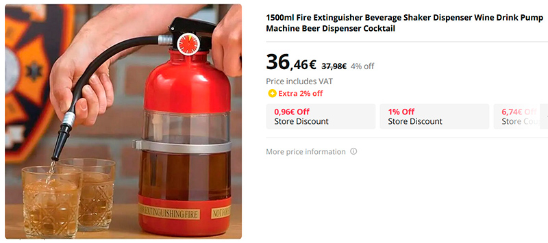 Хороший способ радовать детей на вечеринках - диспенсер для напитков на 1,5 литра в виде огнетушителя. Ну и понятно, что радовать можно не только детей, но и взрослых: достаточно, например, в диспенсер налить пиво или пунш.