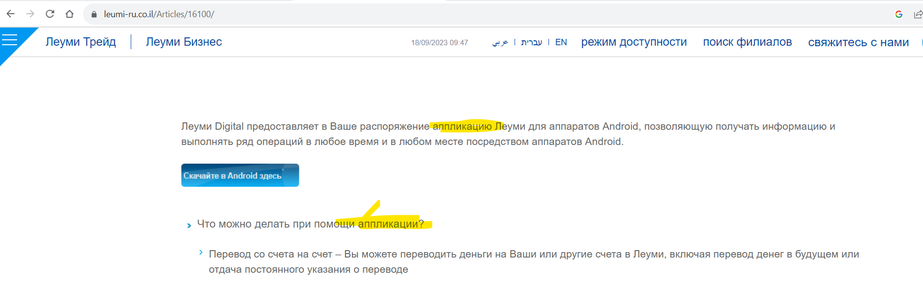 сфоткал утром русский интерфейс банкомата банка апоалим - там тоже реклама их приложения/аппликации, но фотка не удалась, к сожалению.