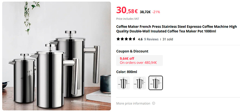 По купону продавца цена уменьшается на 772,57 ₽ (купон берется на странице товара)