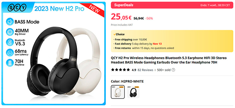 Новая модель недорогих полноформатных наушников QCY H2 Pro. Кодеки AAC и SBC, режим расширенного баса, Bluetooth 5.3, низкая задержка (актуально для игр и просмотра видео), шумоподавление при разговоре, 70 часов автономности, мультипоинт, зарядка в течение 1,5 часов. Плюс еще и складные. Два варианта цветов - белые и черные.