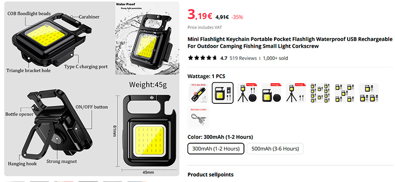 Компактный, легкий и портативный фонарик, который имеет собственную подставку, может крепиться к ключам как брелок (весит всего 45 грамм), крепится на магнит к любой магнитной поверхности, при этом достаточно яркий и стоит копейки.