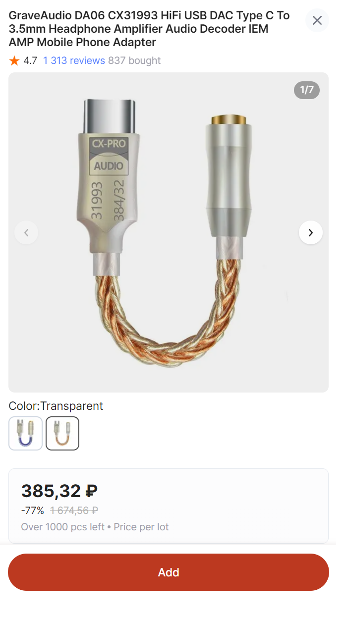 Бюджетный переходник и ЦАП-усилитель для смартфонов/планшетов, не имеющих аудиовыхода под проводные наушники. Усиливает громкость и улучшает качество. Конечно, от такой крошки серьезного усиления громкости ждать не приходится, но разница с обычным переходником будет заметна.
