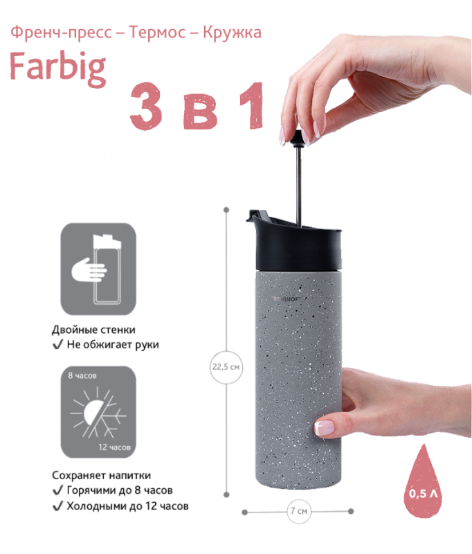 REMIHOF Farbig RmH-C-05. Именно как френч-прессом. Не термокружкой..То есть после заваривания переливаю сразу в чашку, чтобы не было переэкстракта..Тоже советую!!! Можно брать с собой...В путешествия.