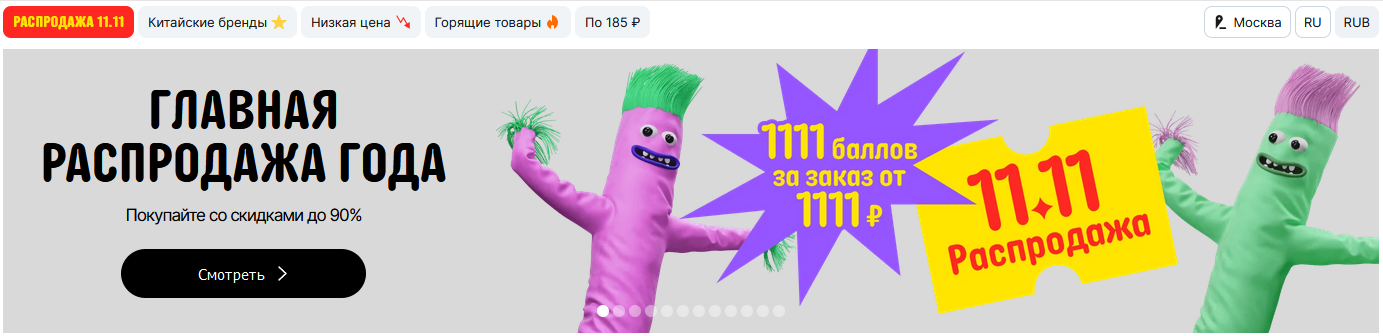 За первую покупку на распродаже будет начислено 1111 баллов за 1111 рублей (только для РФ)