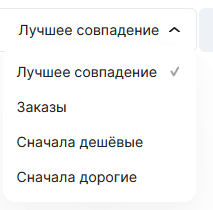 В поле типа сортировки остаётся «лучшее совпадение», но товары выстраиваются по цене.