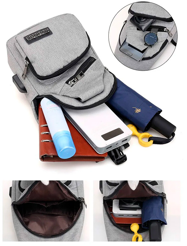 Мужская сумка через плечо со множеством карманов и портом для зарядки телефона. Три варианта расцветок.