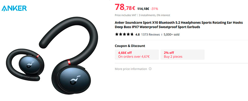 Наушники для активных занятий спортом с надежным ушным креплением Anker Soundcore Sport X10. Защита от воды по стандарту IPX7, высокий уровень пассивной шумоизляции, расширенные басы. От одной зарядки наушники работают до 8 часов, а с учетом зарядки от кейса автономность расширяется до 32 часов работы. 10-минутной зарядки хватит на 2 часа работы. Кодеки - SBC и AAC.