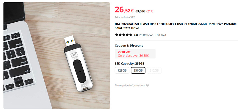 Дешевые (аналоги в 1,5-2 раза дороже) внешние SSD на 128 и 256 ГБ.