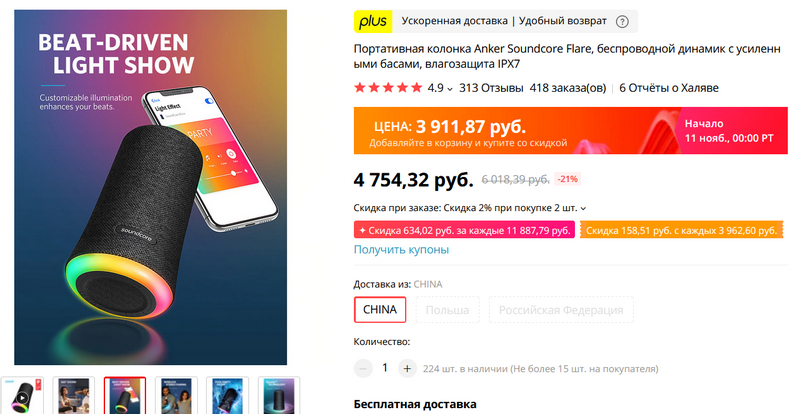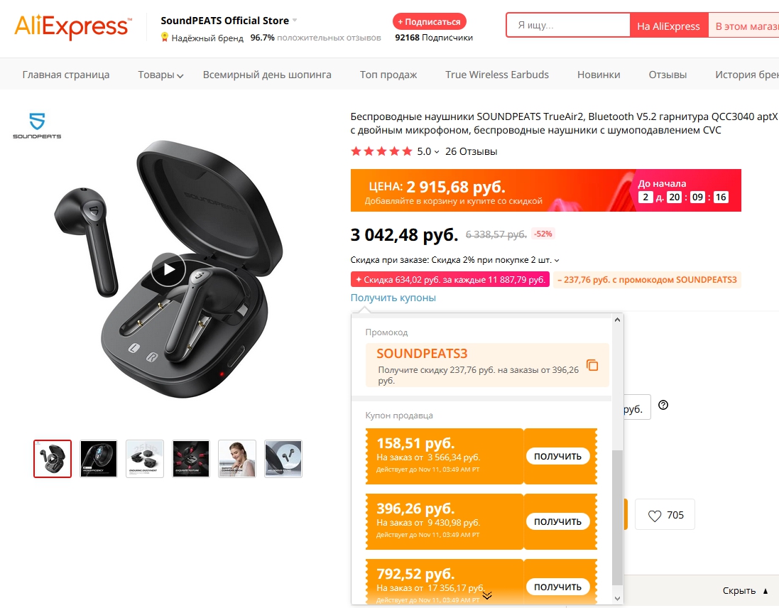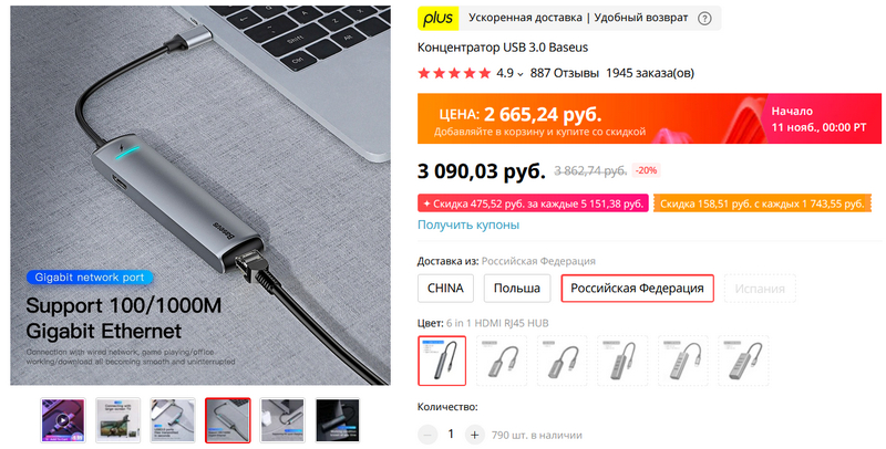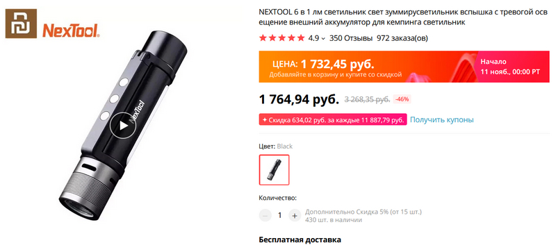 Но прежде чем мы приступим, напомню, что на Aliexpress идет подготовка к главной распродаже года, которая стартует 11 ноября и будет идти только двое суток - до утра 13 ноября. Сейчас идет так называемый период разогрева, во время которого коллекционируются купоны на скидки и промокоды, а товары со скидкой добавляются в корзины, чтобы приобрести их 11 числа, когда скидки активируются.