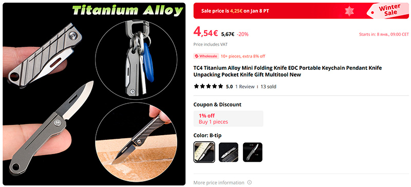 Еще понравился вот такой с карабинчиком, титановый - его тоже заказал, мне все равно парочка нужна для разных комплектов ключей.