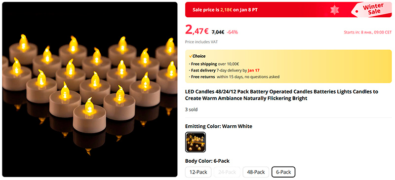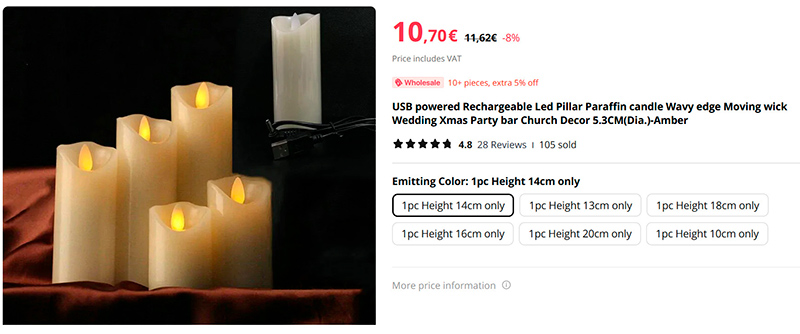 Если нужен вариант с имитацией пламени (я дома как раз такие использую) - вот дешевые комплекты по 6 и более штук. Тут тоже батареи входят в комплект.