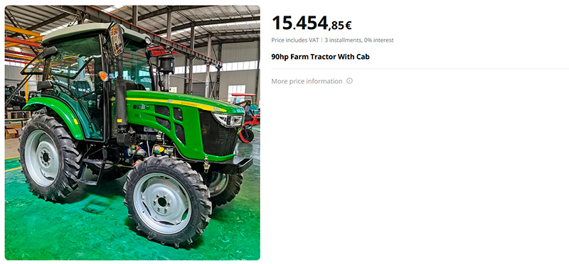 Неплохой выбор тракторов по 15,5 тысяч евро. Разумеется, это нормальные полноценные тракторы, а не какие-то там модели. Полный привод и все такое. В Испанию за доставку просят 66289 евро, но в другие места, наверное, будет дешевле. Если кто будет брать, потом в комментариях поделитесь опытом: как доставили, как работает, как прошла весенняя посевная. Всем будет полезно.