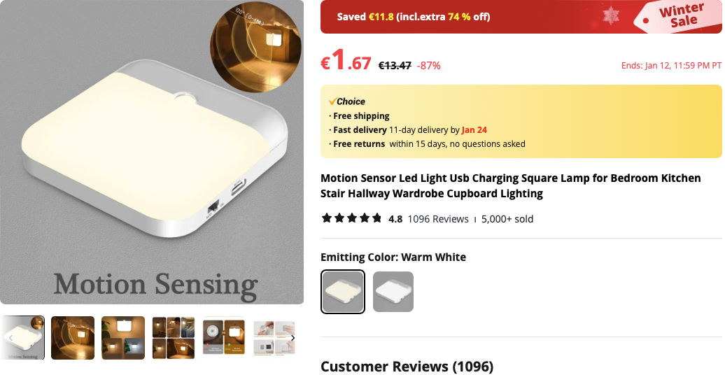 1. Лампа с сенсором движения. Заряжается от USB. Светит ярко. Удобно там, куда часто не надолго заходишь и свет особо не нужнен. Я повесил на кухне (у меня нет окон на кухне), в встроенном шкафу и на веранде.
