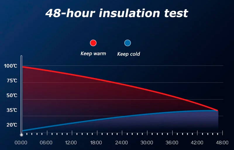 Производитель приводит график сохранения как горячей, так и холодной температуры в этих термосах в течение 48 часов.