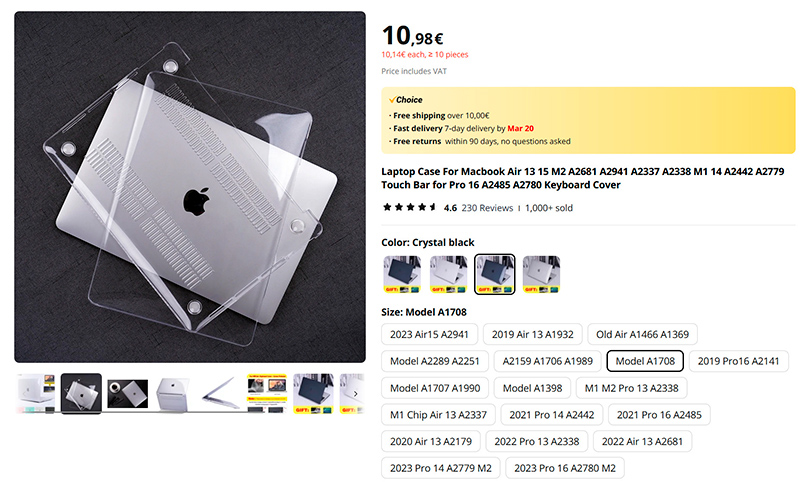 Макбук, конечно, совершенно не прикольно использовать без чехла: алюминий быстро царапается, и устройство теряет товарный вид. Это неприятно и владельцу устройства, и заметно влияет на цену при продаже. Выход - использовать специальный чехол. Он закрывает и крышку, и нижнюю часть (соответствующие вентиляционные отверстия, конечно же, сделаны), есть четыре варианта цветов, включая прозрачный вариант, не портящий внешний вид устройства, поддерживается куча моделей макбуков.