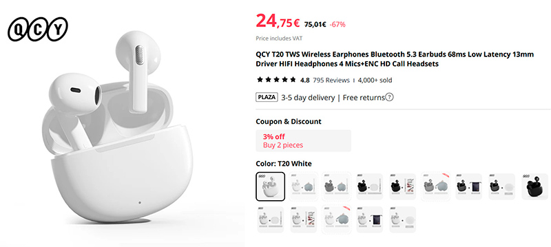 Далеко не всем пользователям нравятся TWS-наушники формата затычки (я к таковым тоже отношусь). Многим больше подходят наушники-вкладыши - в формате AirPods. Но AirPods даже предыдущего поколения стоят €150, а что если просто хочется нормальные TWS-наушники такого типа и без особых прибамбасов, и чтобы стоили не дороже €30?