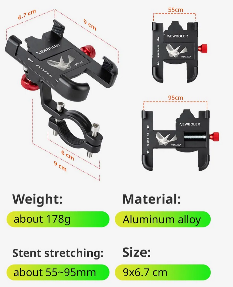 Наткнулся на стильный металлический велосипедный держатель. Пишут, что подходит почти под все типы современных телефонов.