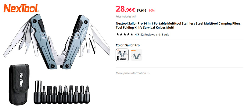 Недорогой мультитул "14 в 1" от NexTool на основе пассатижей с дополнительным набором бит.