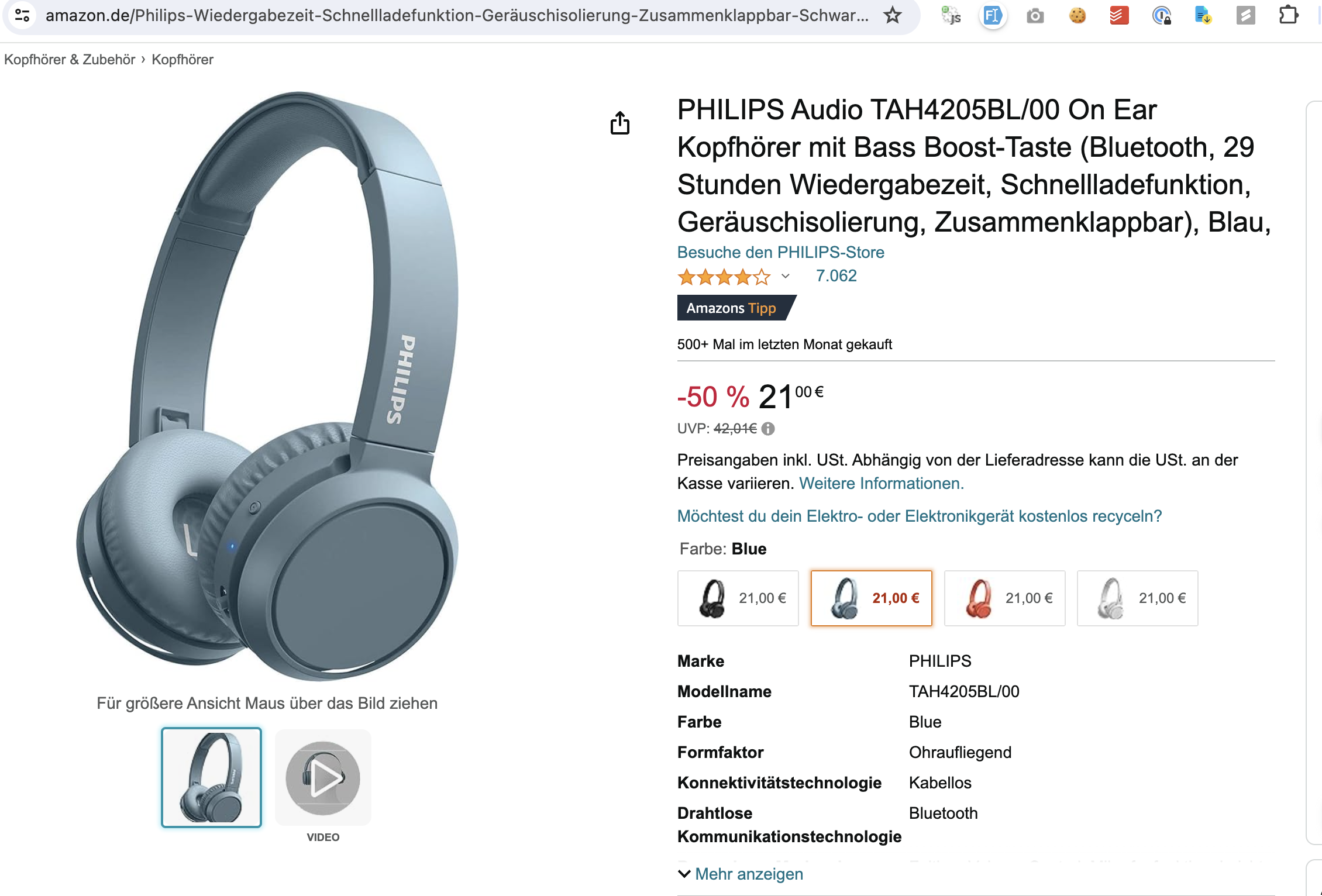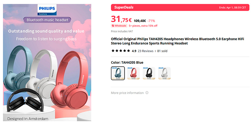 Недорогие беспроводные накладные наушники Philips TAH4205. Четыре варианта цветов, расширенный бас (специальный режим), вес 149 граммов, Bluetooth 5.0, 29 часов автономности, кнопочное управление, работа в режиме гарнитуры.