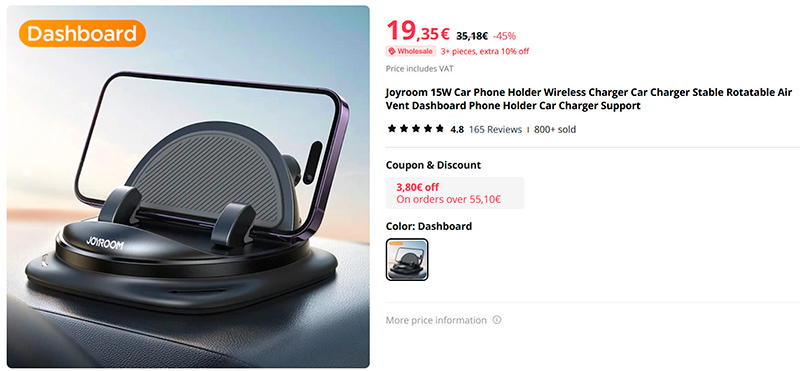 Удобный держатель со встроенной беспроводной зарядкой. Есть кнопка разворота в горизонтальное положение. Зажимает обычно сам. отпускает по нажатию кнопки.