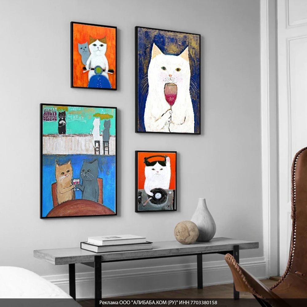 Настенные художественные картины для гостиной, детской, спальни, детской комнаты, Куадрос, домашний декор, Мультяшные Коты, плакаты и принты, картина маслом на холсте