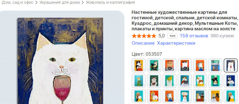 Есть много оригинальных рисунков, размеры: от 10х15 см до 60х90 см.