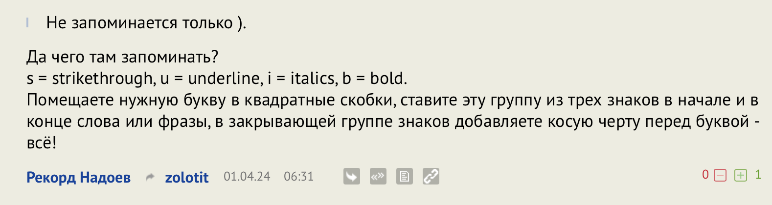 Bold и Italic - кнопками под формой ответа, их все и так помнят 😉