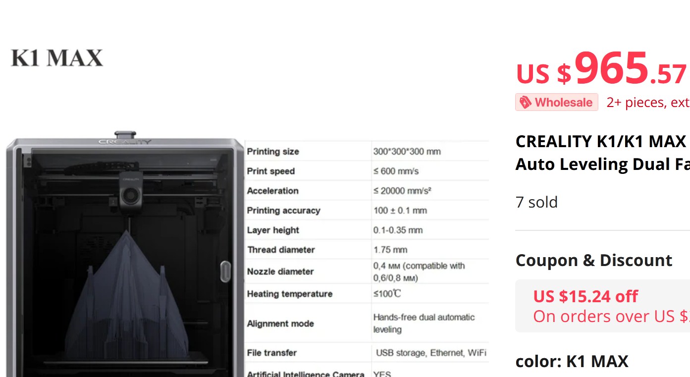 Раздумываю над выбором 1-ного 3Д-принтера, соседу заказывал недавно Криалити к1 мах. .