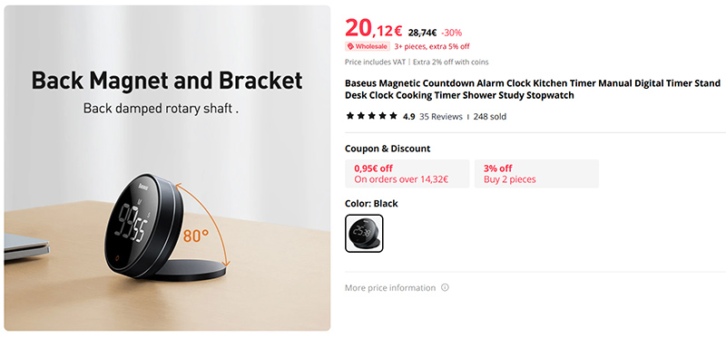 Удобный многофункциональный электронный таймер от Baseus. Подставка магнитная, таймер можно вертикально крепить на холодильник и другие стальные поверхности, также его можно ставить на горизонтальную поверхность. Время в минутах и секундах выставляется поворотом зубчатого кольца. Управляется таймер с помощью сенсорной кнопки.