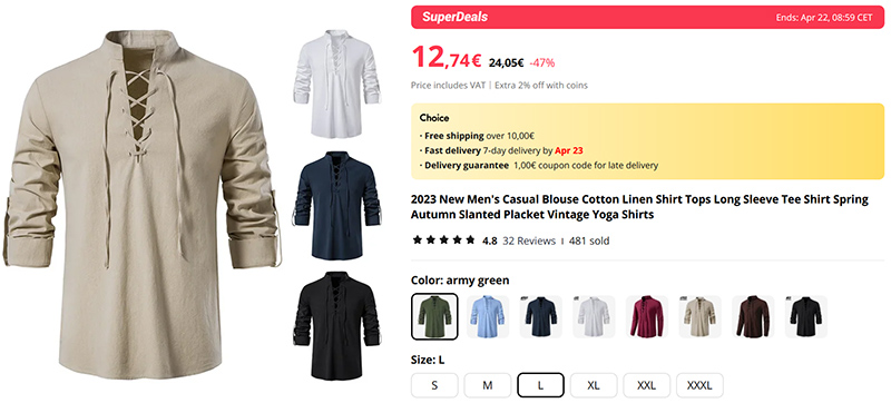 Хлопковые рубашки интересного фасона: хороший выбор цветов, различные размеры. Размеры европейские, но, на всякий случай сверьтесь с таблицей. У меня должен подойти мой обычный L, судя по таблице. Заказал, люблю такое.