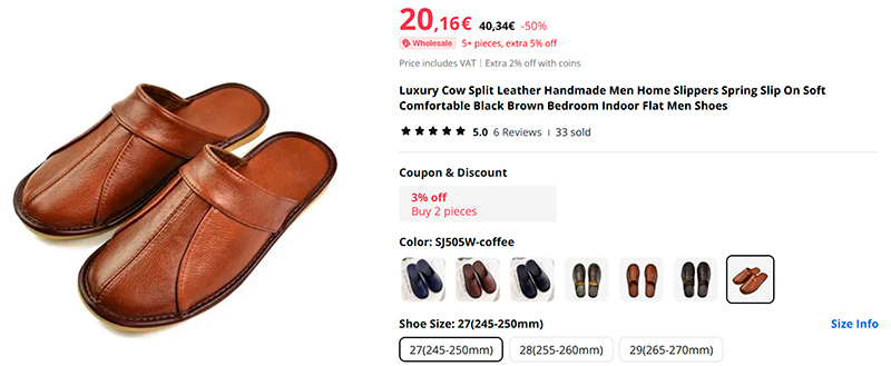 Удобные кожаные тапки разных расцветок. Твердый носок - как раз для меня, а то я себе пару раз ломал мизинец на правой ноге, треснув ногой обо что-то. С того момента - только твердые тапки, никаких мягких носков у них. Ну и давненько я обзор домашних тапок не делал, надо заняться.