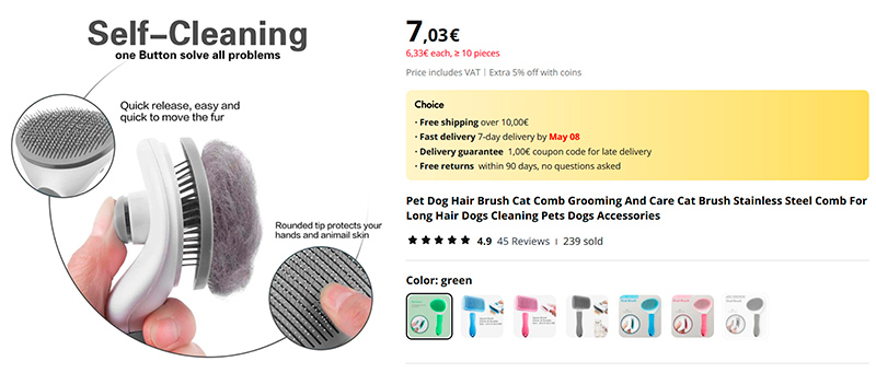 После приобретения силиконовой щетки с ультразвуковым паром, никакие другие меня не радуют. Ссылок не даю, покупал не на Али, но недавно заказал вторую с металическими щетинками, прочесывать до подпушка.
