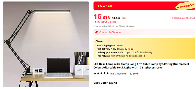 Немножко померла моя настольная лампа, решил на замену купить самую что ни на есть классическую - со струбциной и пантографом: на мой взгляд, такая самая удобная.