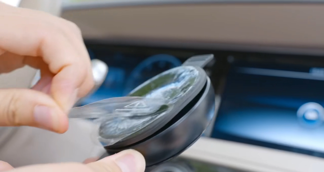 Просто вставляете телефон, опускаете его рукой и шарниры зажимают его с боков. Ничего не вылетает даже на ядрёных кочках.