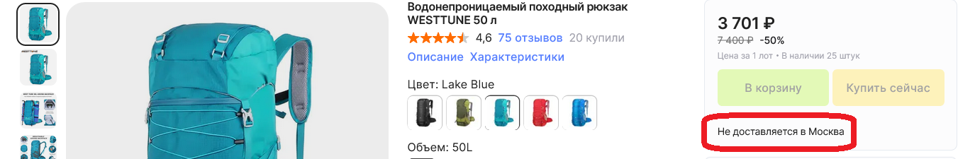 А теперь включаем общечеловеческую. Барышня из РФ купила (очевидно, на алидотру) рюкзак. Вот он у неё в заказах, в избранном и т.д. и т.п. И всё это на дотру.