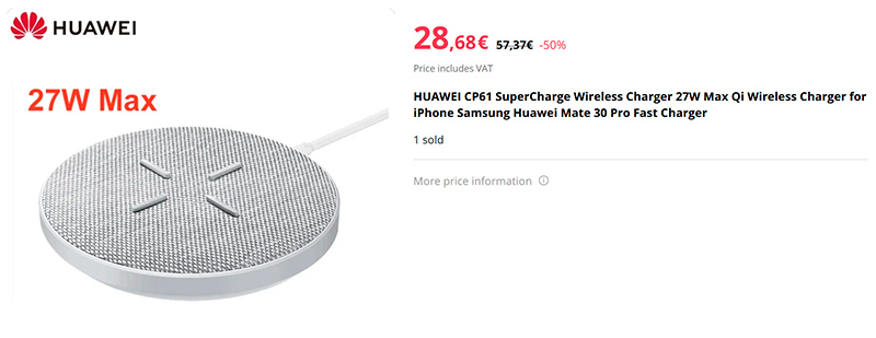 Удобная беспроводная зарядка Huawei стандарта Qi, поддерживающая мощность до 27 Вт. Бесшумная, в отличие от некоторых других мощных беспроводных зарядок.
