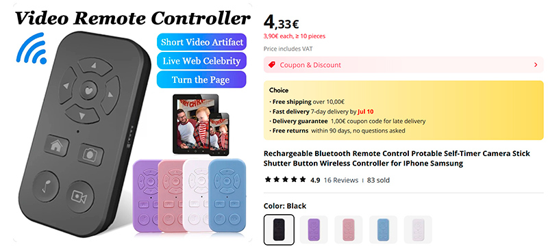 Забавная штука - многофункциональный дистанционный пульт управления для смартфона/планшета. Может управлять аудиоплеером, камерой (сделать фото и видео), переходом на главную страницу, скроллингом, регулировкой громкости. Понятно, что если вы можете управлять смартфоном с умных часов, то такая штука вам не нужна. А если не используете умные часы - вот тогда и пригодится.