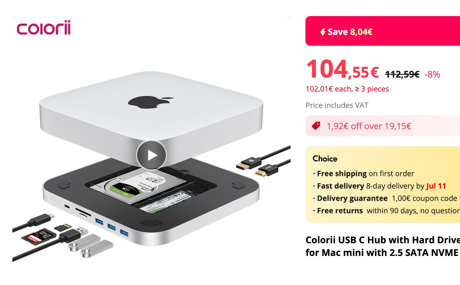 • внутри: слот для диска M.2 NVMe/NGFF + слот для 2,5-дюймового диска SATA (диски работают одновременно).