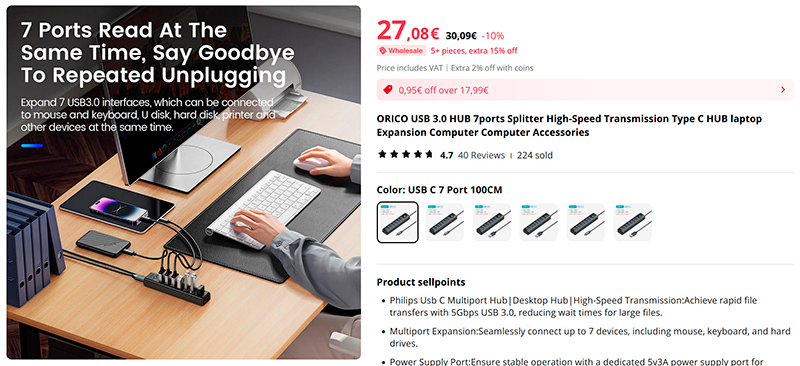 Замучила нехватка USB-портов у ПК или ноутбука/макбука? Вот отличный вариант - компактный 7-портовик USB 3.0 от Orico. Под USB-A или Type-C, с кабелем 15, 50 или 100 см.