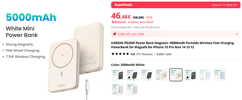 Собственно, таких аккумуляторов с поддержкой MagSafe - великое множество, но лучше всего брать аккумулятор проверенного производителя, и я сам давно уже предпочитаю Ugreen, у них очень качественные устройства.