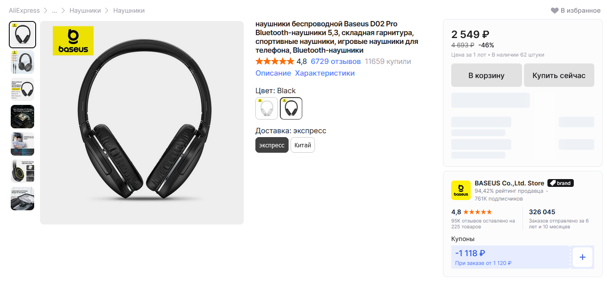 Складные головные наушники в чёрном или белом цвете с поддержкой Bluetooth 5.3 и батареей на 50 часов непрерывного звучания. При желании можно подключить и по проводу.