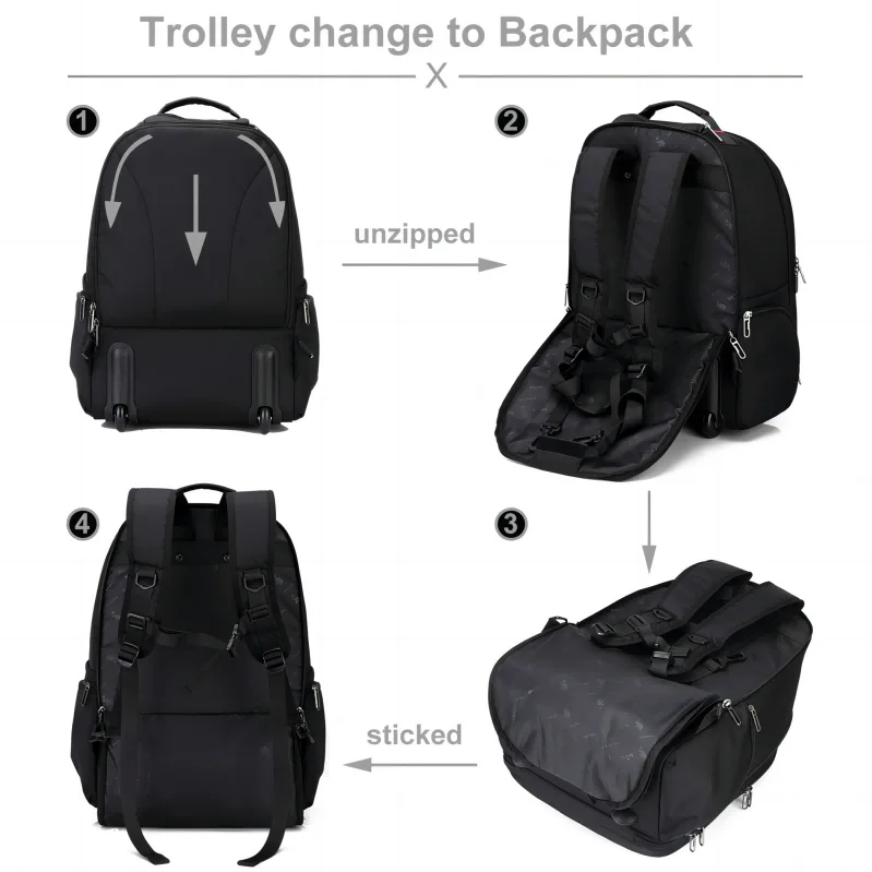Для пары предстоящих поездок искал вариант рюкзака с колесиками и выдвижной ручкой, чтобы он также укладывался в допустимый размер для ручной клади.