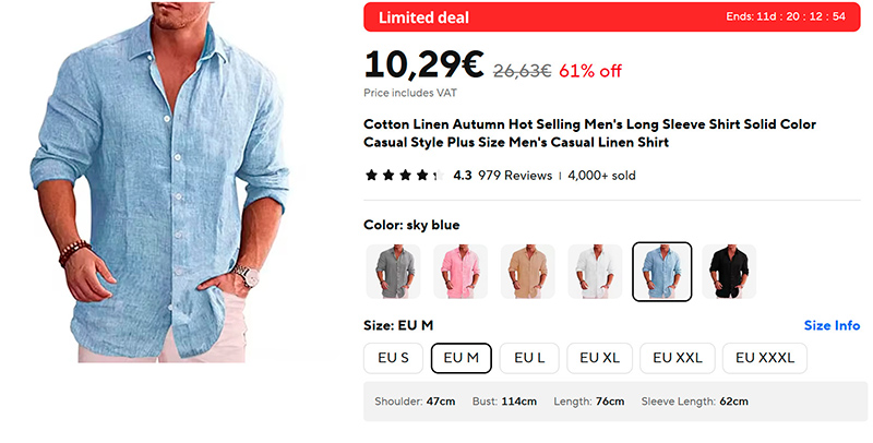 Мужские хлопковые рубашки разных расцветок (ссылка для РФ). Размеры европейские. Заказал. Как приедет, поделюсь впечатлениями.