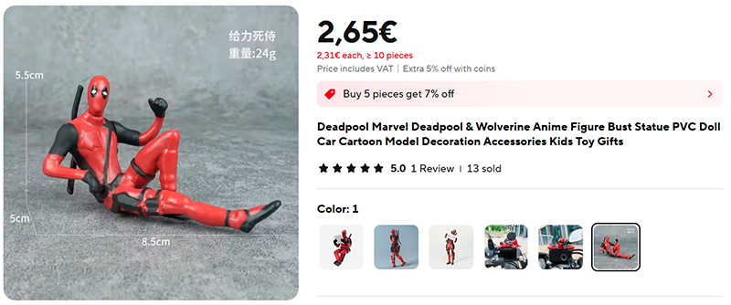 Фигурки Дэдпула в разных позах (ссылка для РФ) небольших размеров (в стоячем виде - максимум 10 см). Заказал себе одного на монитор, другого на комп. Что значит - в детство впал? Я из него и не выпадал, на самом деле. А Дедпул у меня любимый персонаж. Он похож на актера Райана Рейнольдса с физиономией шарпея.