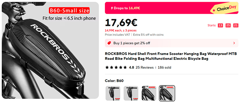 Это я себе искал, но, может, и еще кому-то пригодится. Твердая небольшая сумка для велосипеда (ссылка для РФ), которая крепится к рулю и к раме. Два размера. И там же - аналогичные сумки двух размеров для крепления на колонку электросамоката.